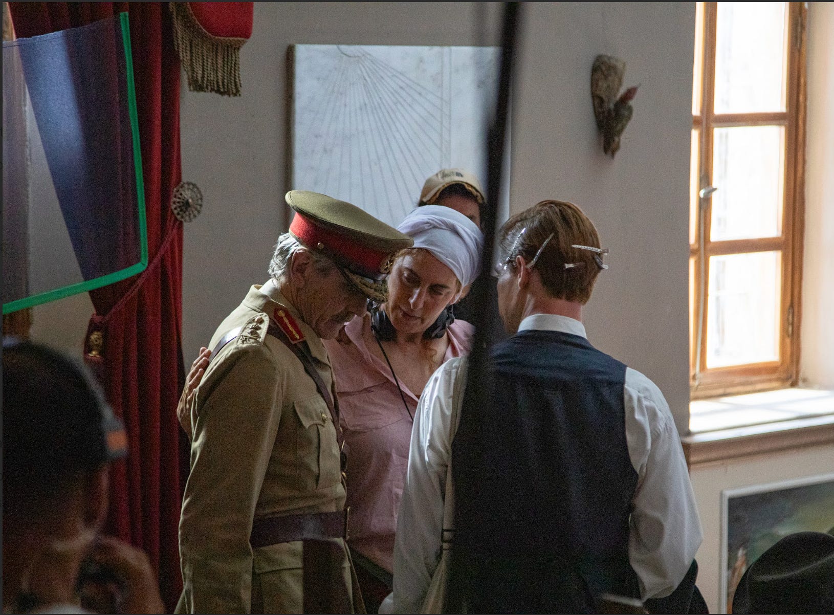 We focused on making the world alive for the actors, not just doing straight-up rehearsals. Saleh Bakri, who plays Khalid, had horseback riding lessons for months, almost a year. Thomas and Khuloud had dance classes. Yasmine had typing lessons on a period typewriter. In the village, actors learned how to bake bread, hang tobacco leaves, work with their hands. A lot of that never directly appears in the film, but it becomes part of their identities.